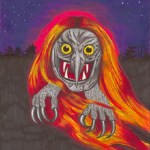 There were many evil spirits and terrible monsters that hid in the mountain or caves when the sun shone, but came out to vex and plague the red men when storms swept the earth or when there was darkness in the forest. Among them was a flying head which, when it rested upon the ground, was higher than the tallest man. It was covered with a thick coating of hair that shielded it from the stroke of arrows. The face was very dark and angry, filled with great wrinkles and horrid furrows. Long black wings came out of its sides, and when it rushed through the air mournful sounds assailed the ears of the frightened men and women. On it’s under side were two long, sharp claws, with which it tore its food and attacked its victims. The Flying Head came oftenest to frighten the women and children. It came at night to the homes of the widows and orphans, and beat its angry wings upon the walls of their houses and uttered fearful cries in an unknown tongue. Then it went away, and in a few days death followed and took one of the little family with him. The maiden to whom the Flying Head appeared never heard the words of a husband’s wooing or the prattle of a papoose, for a pestilence came upon her and she soon sickened and died (Cornplanter, 1902, p125-126).